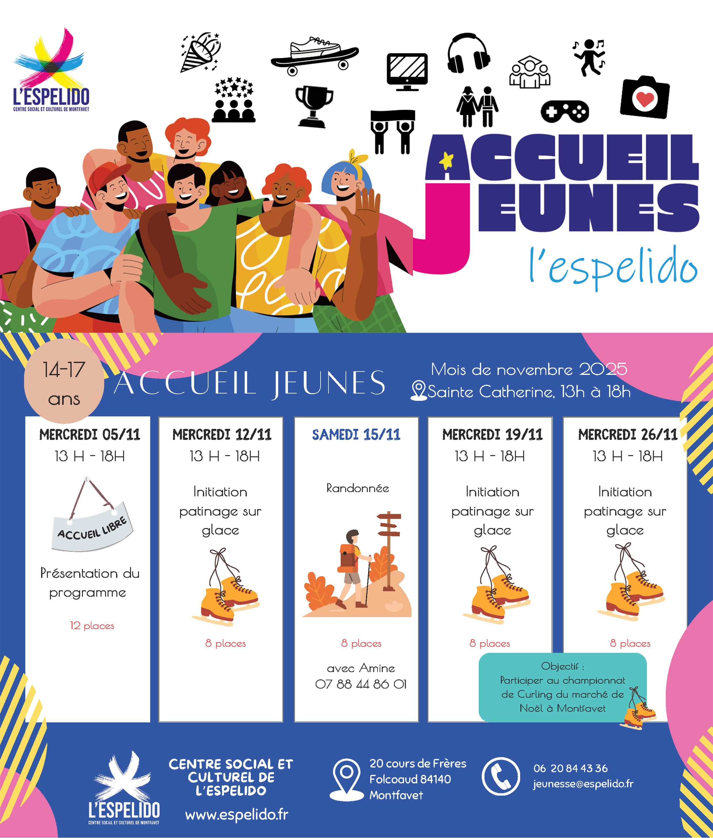 Le projet d’Accueil Jeunes est développé sur deux dimensions complémentaires : une incitation à la participation en favorisant l’accès à des activités culturelles et artistiques, des temps d’accueil information jeunesse et d’aide à la réalisation de projets.
