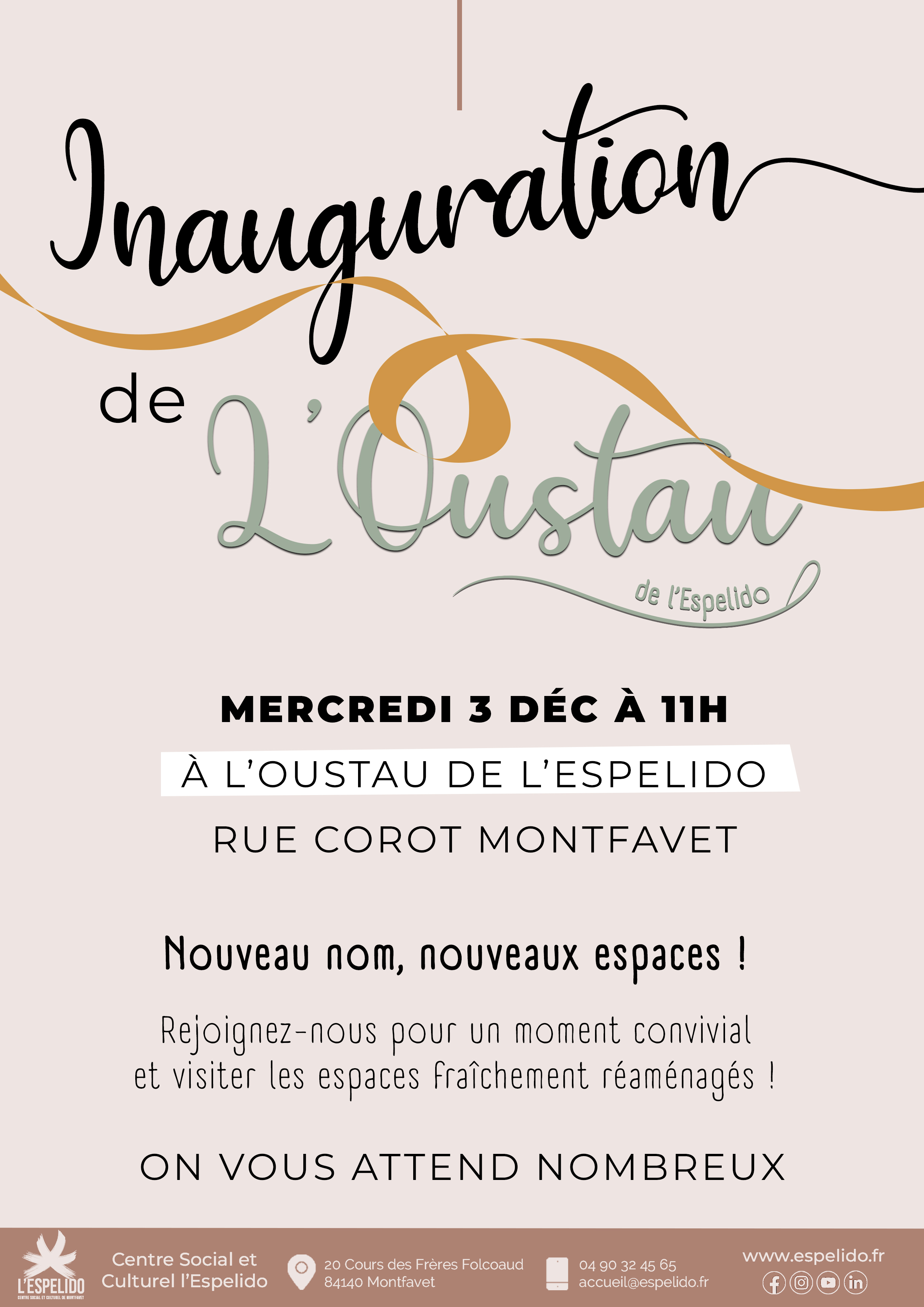 Nous avons le plaisir d’annoncer l’inauguration officielle de l’Oustau de l’Espelido, notre espace d’animation récemment réaménagé.